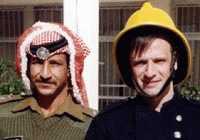 Richard has toured the world acting in sketch shows with the English Teaching Theatre, from Mexico to the Middle East. The picture is from a 1988 tour of Cyprus, Jordan, Israel and the Occupied Palestinian Territories, playing at the Palestinian El-Hakawati Theatre in East Jerusalem. The Bedouin policeman in the picture saw the show in Amman, Jordan. Richard also appeared in the company's 30th anniversary show in London in October 2003.